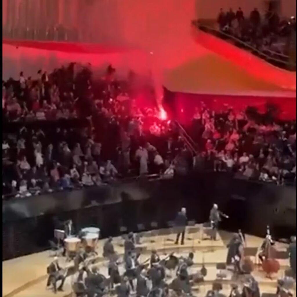 O concerto estava em andamento quando indivíduos na plateia começaram a gritar palavras de ordem e a se manifestar contra a apresentação da orquestra israelense. O ato de protesto resultou em cenas de tumulto e empurra-empurra dentro da sala de concertos, enquanto a equipe de segurança tentava conter a situação. A reação imediata de outros espectadores, que tentavam impedir a interrupção, transformou o que deveria ser uma noite de música em um ambiente de desordem.